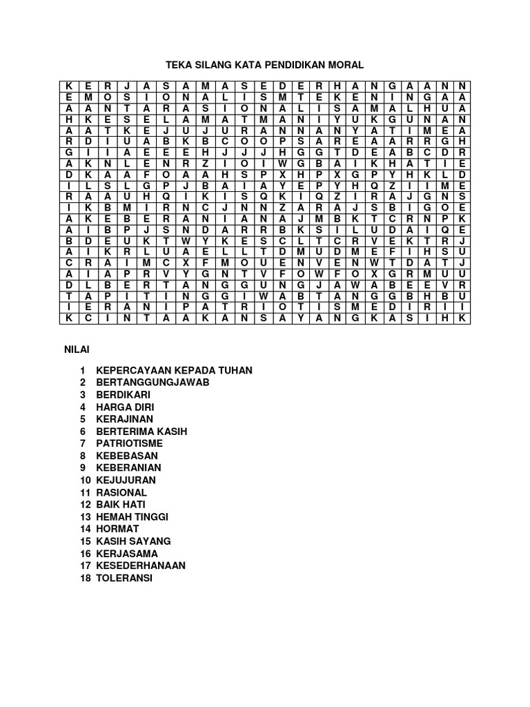 Ejercicio De Teka Silang Kata Nilai Universal P Moral